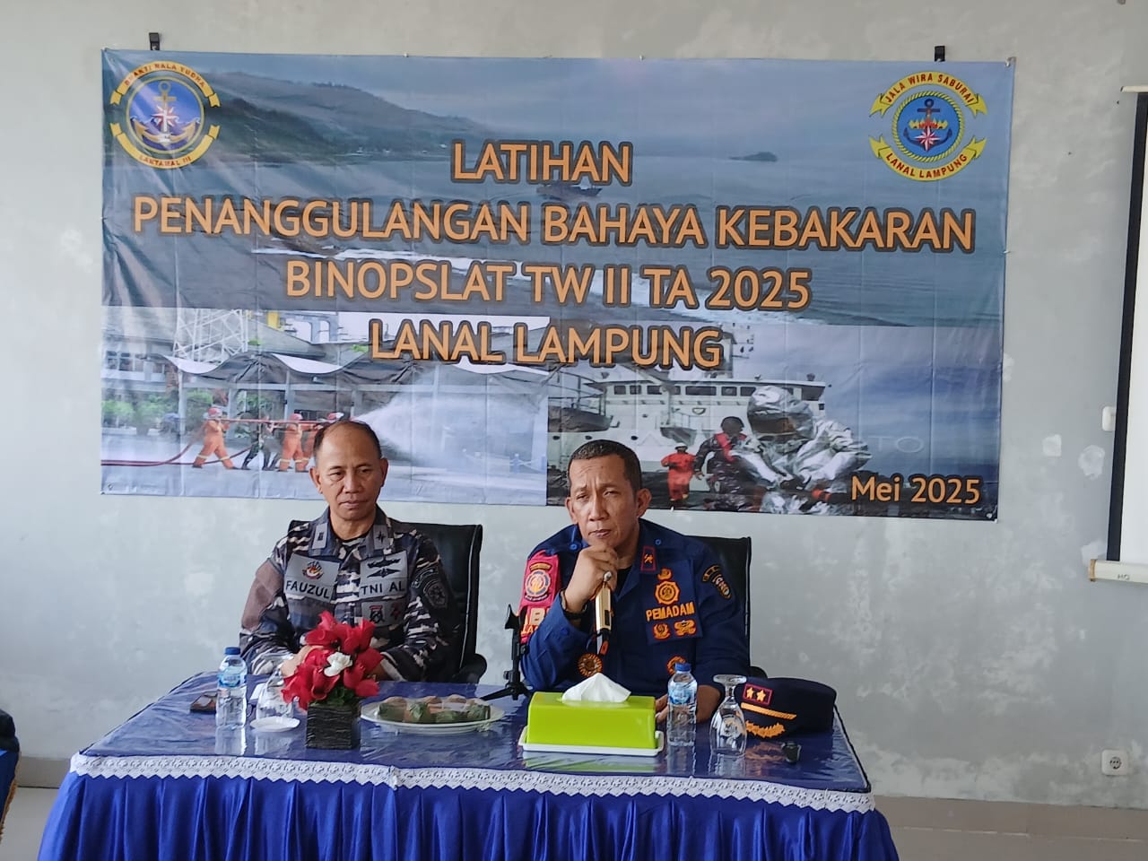 Bandar Lampung, Harianduta.com-Guna meningkatkan kesiapsiagaan dan kemampuan Prajurit dalam melakukan evakuasi dan penyelamatan terhadap bahaya kebakaran, Pangkalan TNI Angkatan Laut Lampung bekerja sama dengan Dinas Pemadam Kebakaran dan Penyelamatan Kota Bandar Lampung menggelar latihan penanggulangan kerusakan Peran Kebakaran, Prokera Binopslat TW II TA 2025.