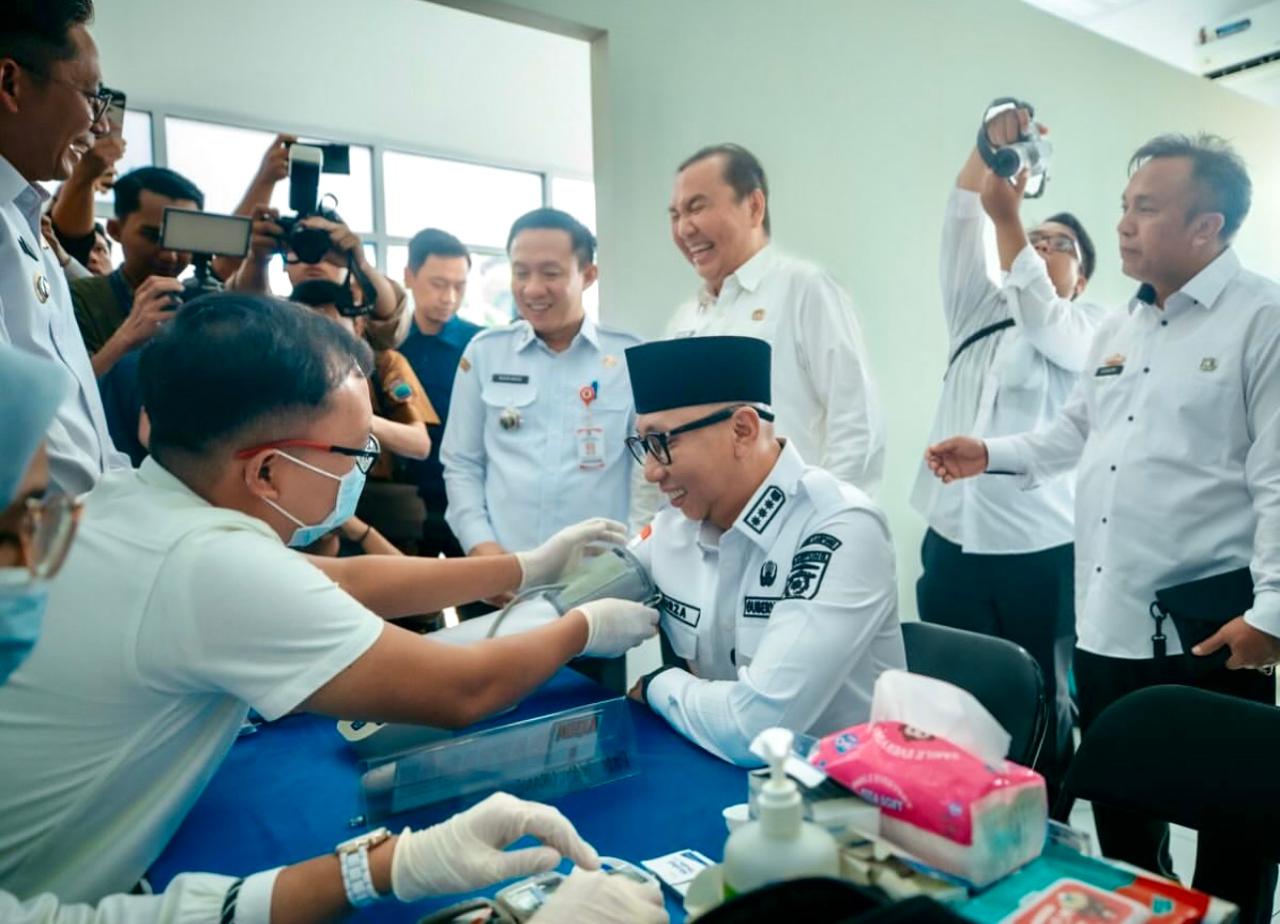 Gubernur Lampung Rahmat Mirzani Djausal ikut melakukan cek kesehatan dalam rangka mendukung penuh Koperasi Desa Merah Putih. Gubernur tampak semangat saat diperiksa kesehatan oleh Dinas Kesehatan Provinsi Lampung