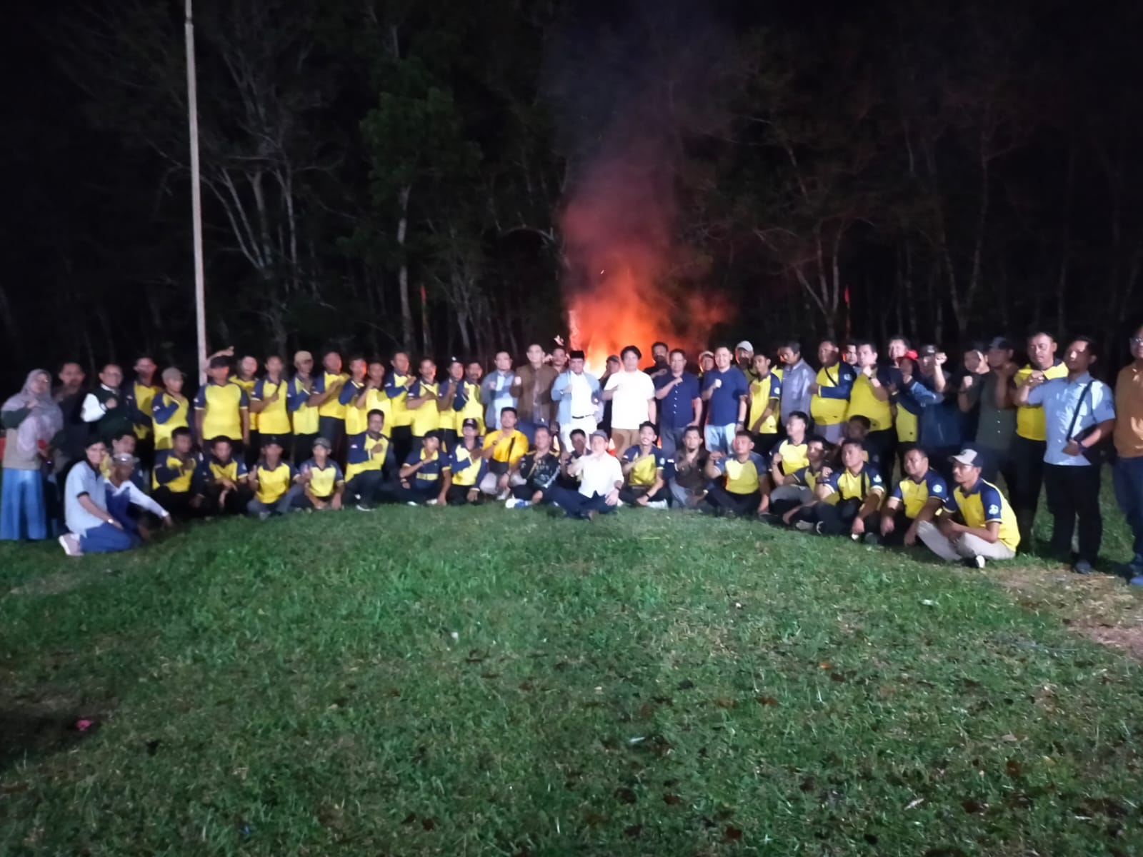 Banyuasin, Harianduta.com-Gelap membekap Lapangan Komplek Rumah Dinas PTPN I Regional 7 Kebun Tebenan, Banyuasin, Sumatera Selatan, Kamis (7/8/25) pukul 00.15. Api unggun dari kayu kering yang disusun di tengah dinyalakan. Cahaya jingga perlahan menyinari 42 karyawan setingkat mandor yang mengelilingi dengan bersila. Lagu “Doaku” dalam format musik tanpa syair menyeruak perlahan mengurung suasana. Tuhu Bangun, Region Head PTPN I Regional 7 membuka narasi dengan meminta peserta “short refreshement” itu memejamkan mata. Ia mulai memainkan alam bawah sadar para pejuang produksi komoditas karet itu untuk membangkitkan rasa pedulinya terhadap perusahaan.