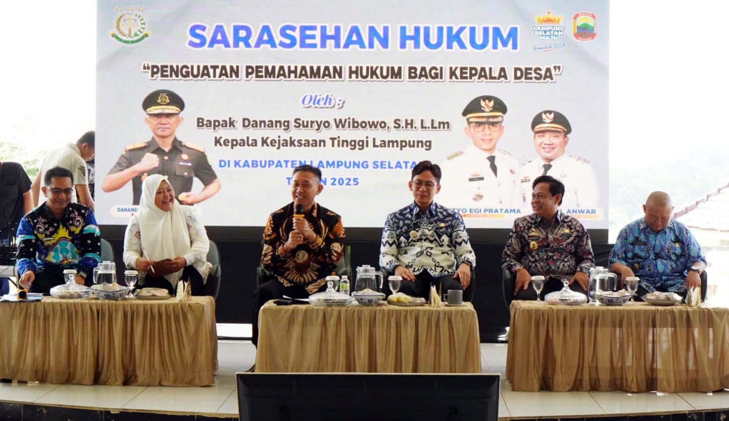 Kegiatan ini diikuti oleh seluruh kepala desa dan lurah se-Kabupaten Lampung Selatan, dengan menghadirkan Kepala Kejaksaan Tinggi (Kajati) Provinsi Lampung, Danang Suryo Wibowo, sebagai narasumber utama. Ia didampingi Kajari Lampung Selatan, Suci Wijayanti.
