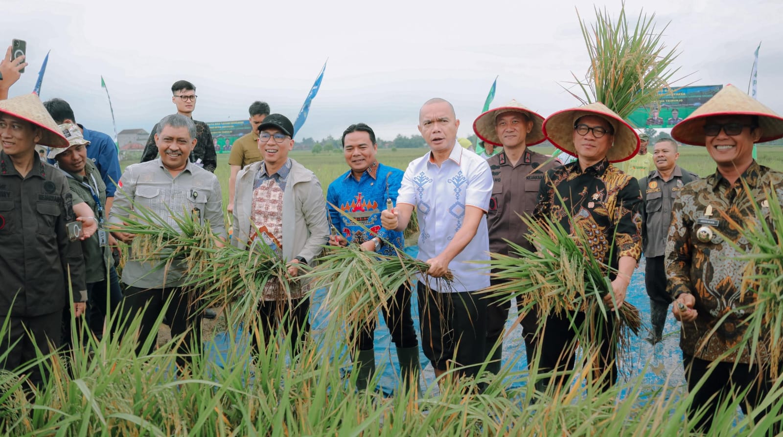 LAMPUNG TENGAH, Harianduta.com- Gubernur Lampung Rahmat Mirzani Djausal mendampingi Menteri Desa dan Pembangunan Daerah Tertinggal Yandri Susanto serta Jaksa Agung Muda Intelijen (Jamintel) Reda Manthovani, melakukan Panen Raya dan Tanam Bersama Petani Mitra Adhyaksa di Kecamatan Trimurjo, Kabupaten Lampung Tengah, Kamis (14/8/2025).