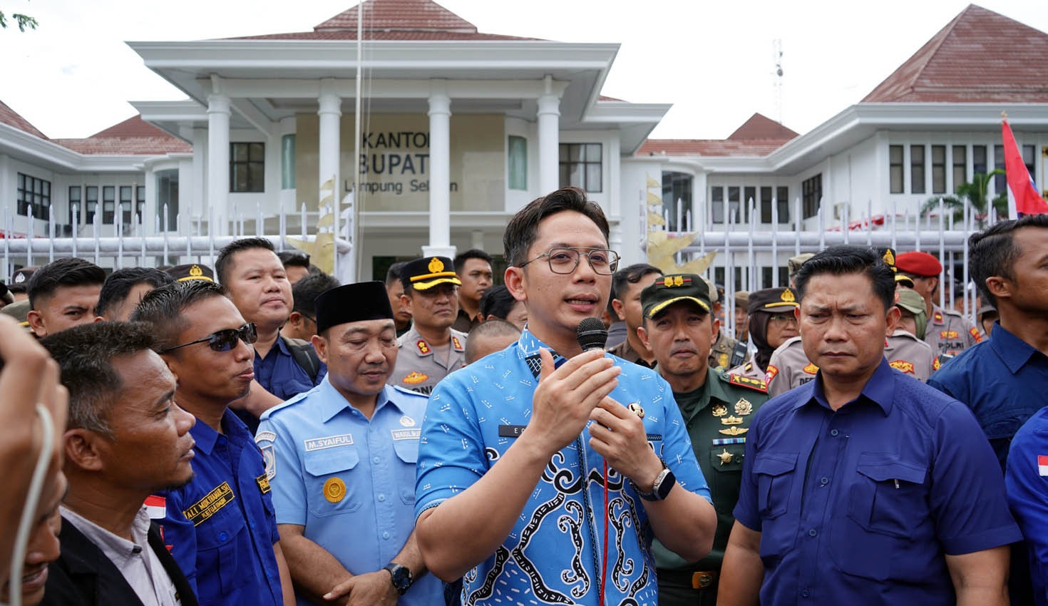 Di tengah teriknya siang, Bupati Lampung Selatan, Radityo Egi Pratama, hadir langsung menemui massa. Kehadiran itu menjadi perhatian, karena jarang seorang kepala daerah turun langsung berdialog dengan warga yang sedang melakukan aksi.