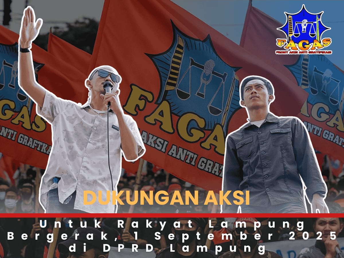 Bandar Lampung, Harianduta.com-Front Aksi Anti Gratifikasi (FAGAS) Lampung mendukung Aksi Lampung Menolak Diam, Indonesia (C)emas, Aliansi Lampung Melawan :