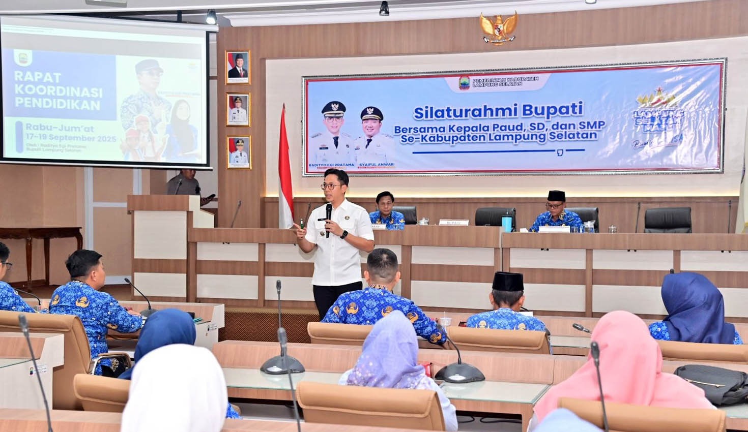 Hal ini ia sampaikan dalam agenda silaturahmi bersama para Kepala Satuan Pendidikan jenjang Pendidikan Anak Usia Dinia (PAUD) se-Kabupaten Lampung Selatan, di Aula Rajabasa, Kantor Bupati Lampung Selatan, Rabu (17/9/2025).