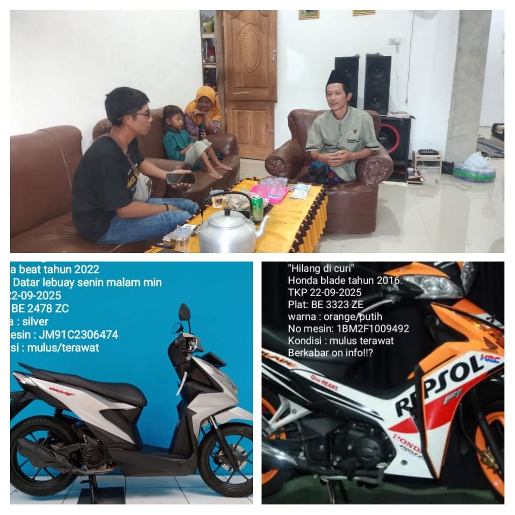 TANGGAMUS, Harianduta.com– Aksi pencurian kendaraan bermotor kembali terjadi. Kali ini, dua unit sepeda motor jenis Honda Blade dan Honda Beat, milik Santoso (44), raib digondol maling pada Minggu malam hingga Senin dini hari, (22/9/2025).