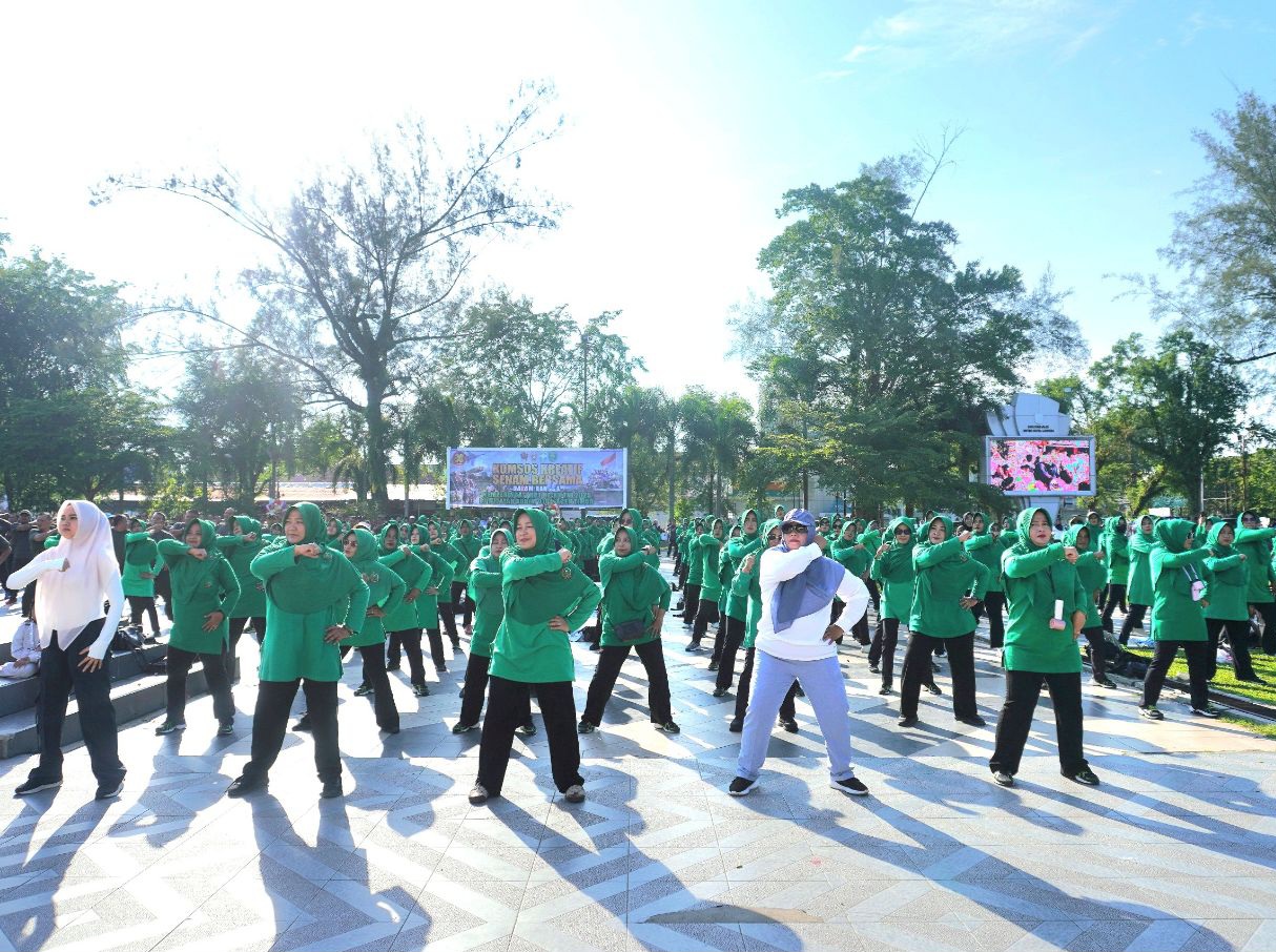 Langsa, Harianduta.com-Ratusan warga Kota Langsa memadati Lapangan Merdeka untuk mengikuti kegiatan Senam Sehat Bersama dalam rangka perayaan HUT ke-80 TNI. Acara ini diselenggarakan oleh PT Cut Meutia Medika Nusantara (PT CMN), anak perusahaan PTPN I yang berada di bawah Holding Perkebunan Nusantara, berkolaborasi dengan jajaran TNI, pada Minggu (21/9/2025).