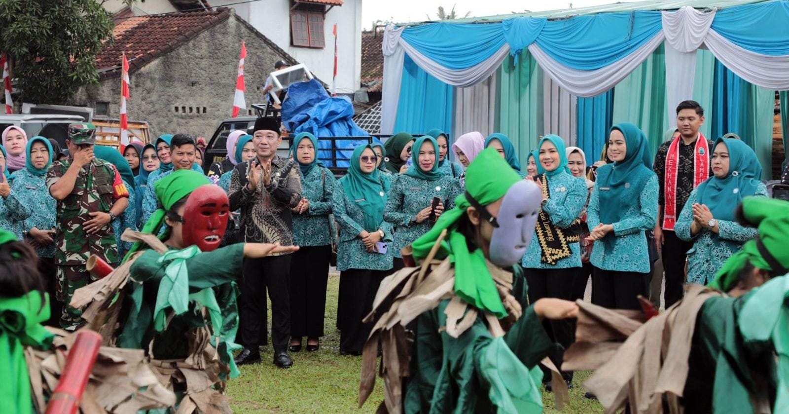 Acara berlangsung meriah dan penuh kehangatan, ditandai dengan penyerahan simbolis bantuan, penampilan seni budaya, serta antusiasme warga yang menyambut rombongan TP PKK Provinsi Lampung dengan sukacita.