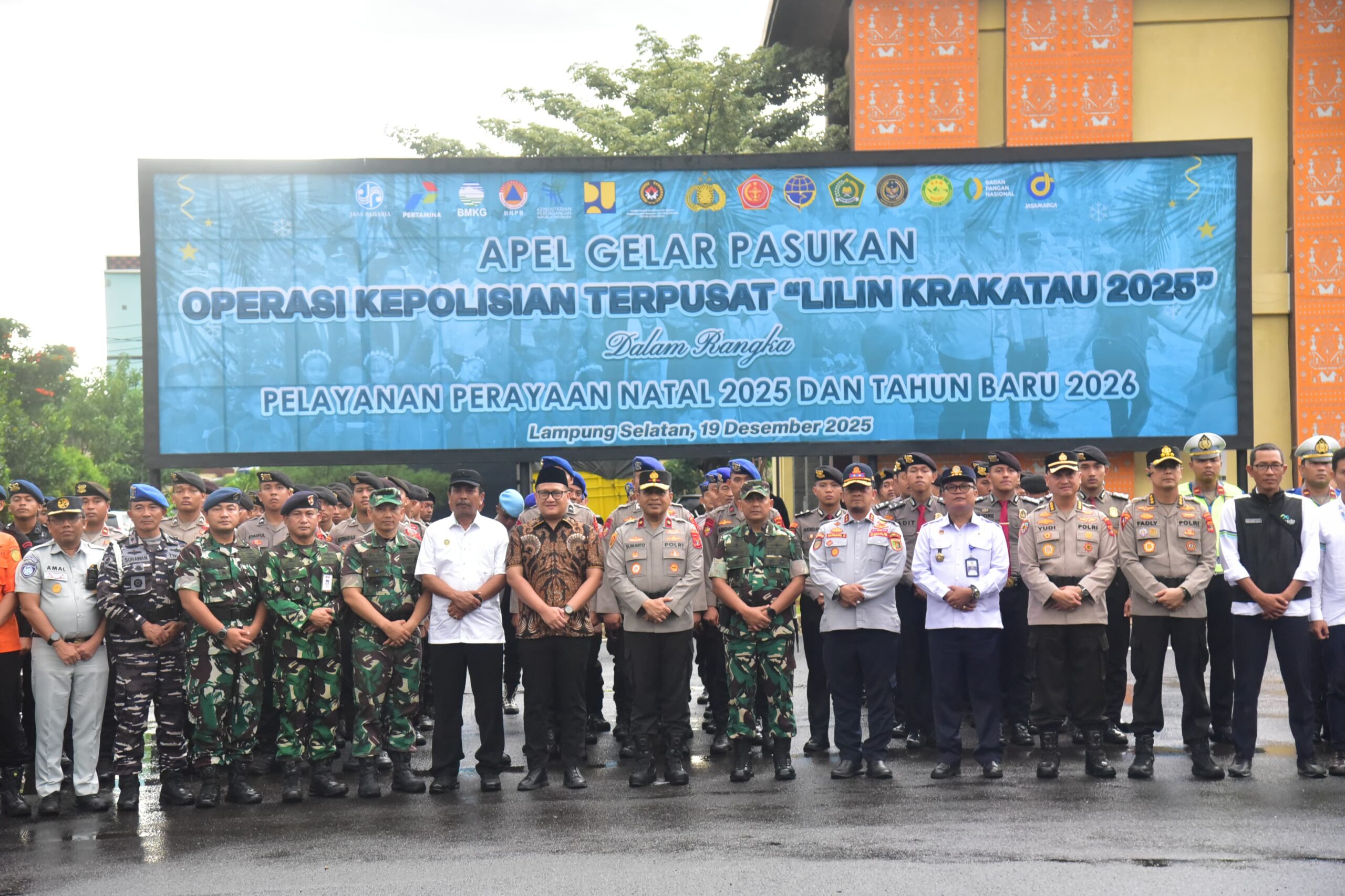 Bandar Lampung – Ketua DPRD Provinsi Lampung, Ahmad Giri Akbar, SE., MM menghadiri Apel Siaga Operasi Lilin Krakatau 2025 yang digelar oleh Polda Lampung pada Jumat (19/12/2025) di Lapangan Apel Polda Lampung.