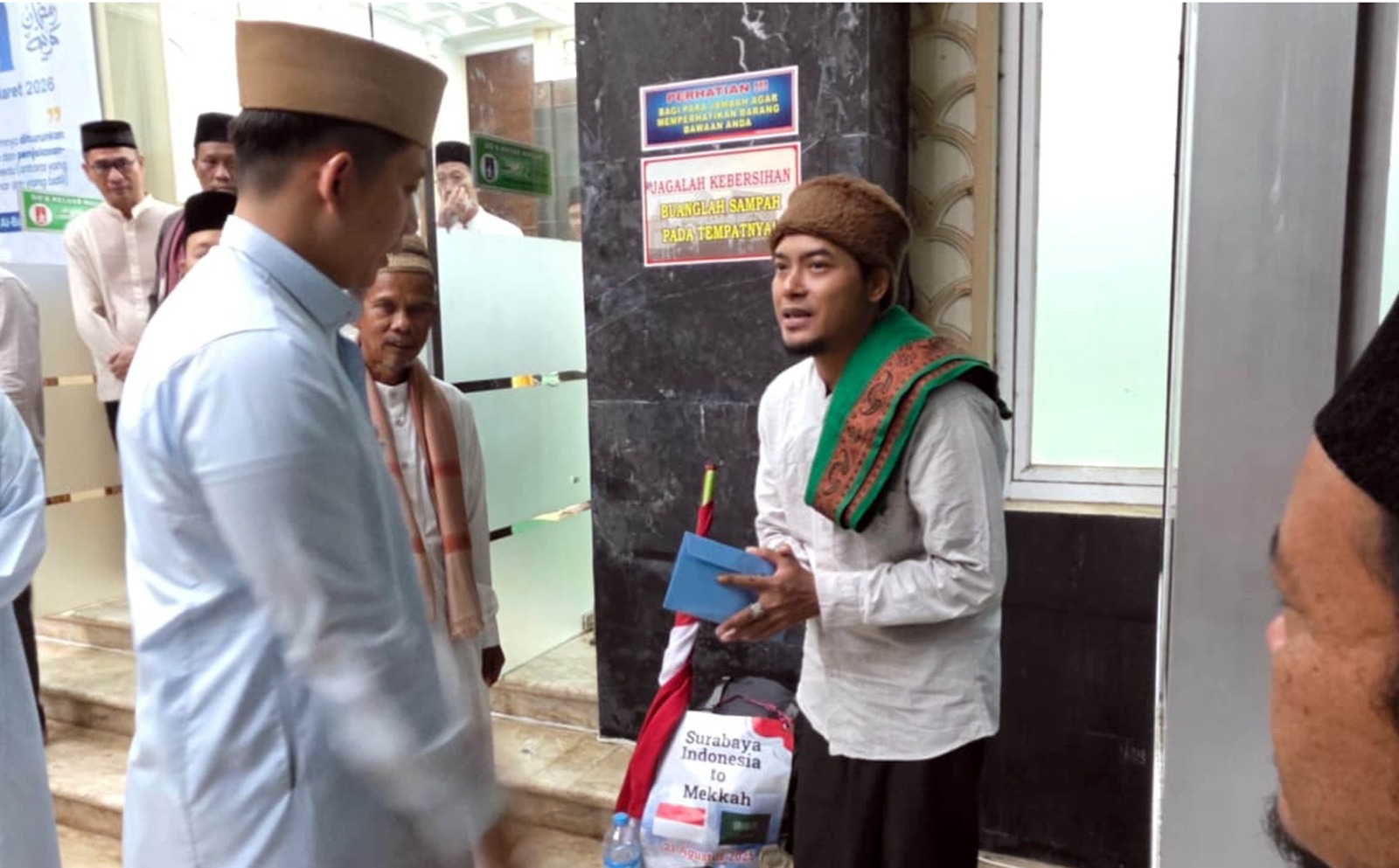 Dari dialog singkat itu, terungkap kisah perjalanan panjang Fyan yang berjalan kaki dari Surabaya menuju Tanah Suci.